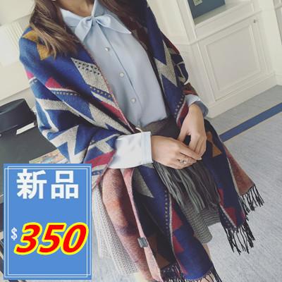惡南宅急店【0092E】加厚款 藍色海洋的傳說 披肩圍巾兩用設計 流蘇造型 針織圍巾圍脖圍 保暖圍巾 中性配色 (4色)