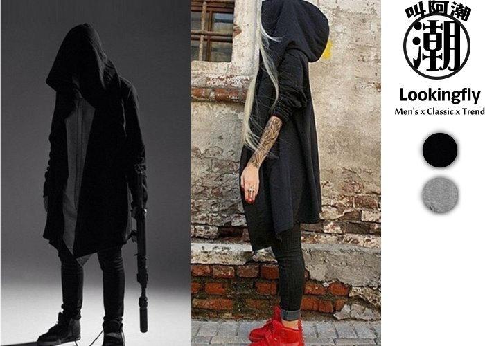 暗黑系斗篷連帽長版風衣外套