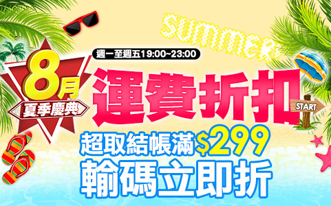 ❇8月夏季慶典 好康加碼再享運費折扣 ❇