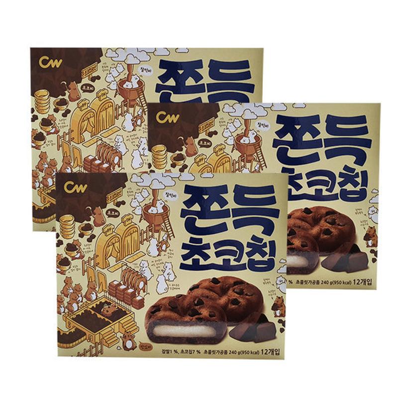 韓國 CW 可可豆 麻糬餅 巧克力豆 餅乾 粘稠巧克力 Q彈 多層次口感 240g(12個裝)X3盒