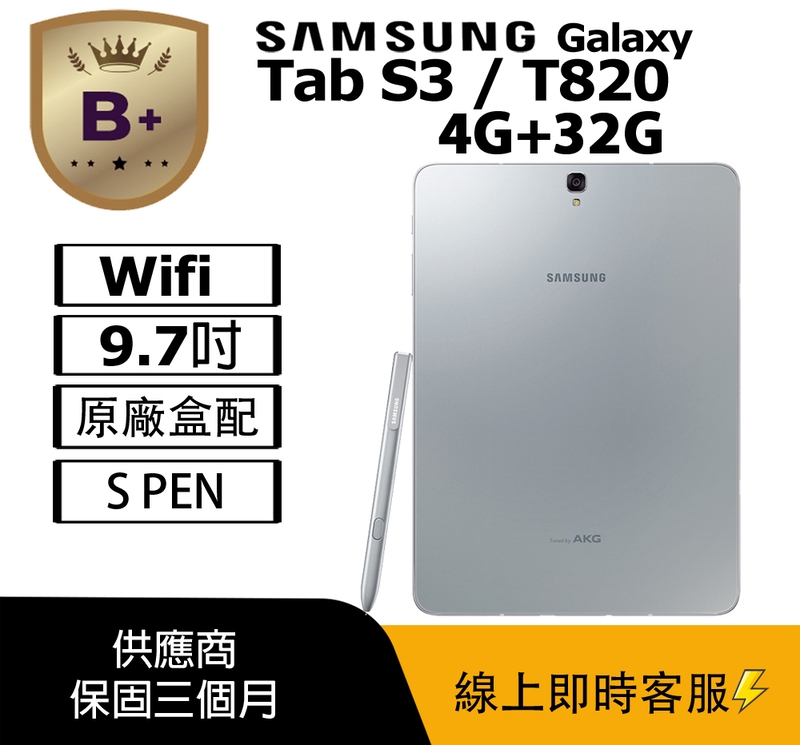 【福利品】Samsung Galaxy Tab S3 Wi-Fi版 (4G+32G) 平板電腦 / T820 銀 R99N
